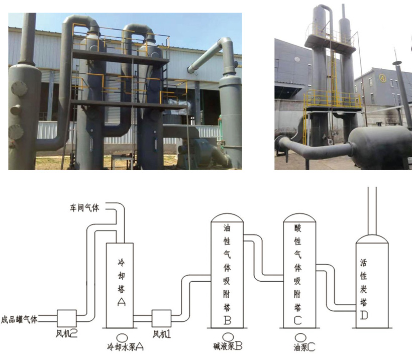 各種瀝青基防水材料的生產(chǎn)過程中,需對瀝青進行加熱、輸送并制成滿足各種工藝要求的瀝青類混合料供生產(chǎn)使用。在此工藝過程中,會產(chǎn)生大量的瀝青煙氣。煙氣中含有多種有機物,包括碳環(huán)烴、環(huán)烴衍生物及其它化合物,有不少對人身健康有危害作用,瀝青煙含有苯并芘、苯并蒽、咔唑等多種多環(huán)芳烴類物質(zhì)”, 且大多是致癌和強致癌物質(zhì),粒徑多在0.1~1 .0μm之間小的僅0. 01μm,大的約為10. 0μm,尤其是以3 , 4-苯并芘為代表的多種致癌物質(zhì)。其危害人體健康的主要途徑是附著在8um以下的飄塵上,通過呼吸道被吸人體內(nèi)。因此,對瀝青煙氣進行凈化治理,使排放滿足大氣環(huán)境標準,是非常必要的。